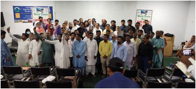 World Blood Donor Day celebration at Civil Hospital Hyderabad on June 14, 2023, organized by SBTA (Sindh Blood Transfusion Authority) in collaboration with LUMHS (Liaquat University of Medical and Health Sciences). The involvement of key figures such as the Secretary of SBTA, LUMHS faculty, monitoring officers of SBTA and blood bank technicians from surrounding districts suggests a comprehensive and collaborative effort to promote voluntary blood donation.